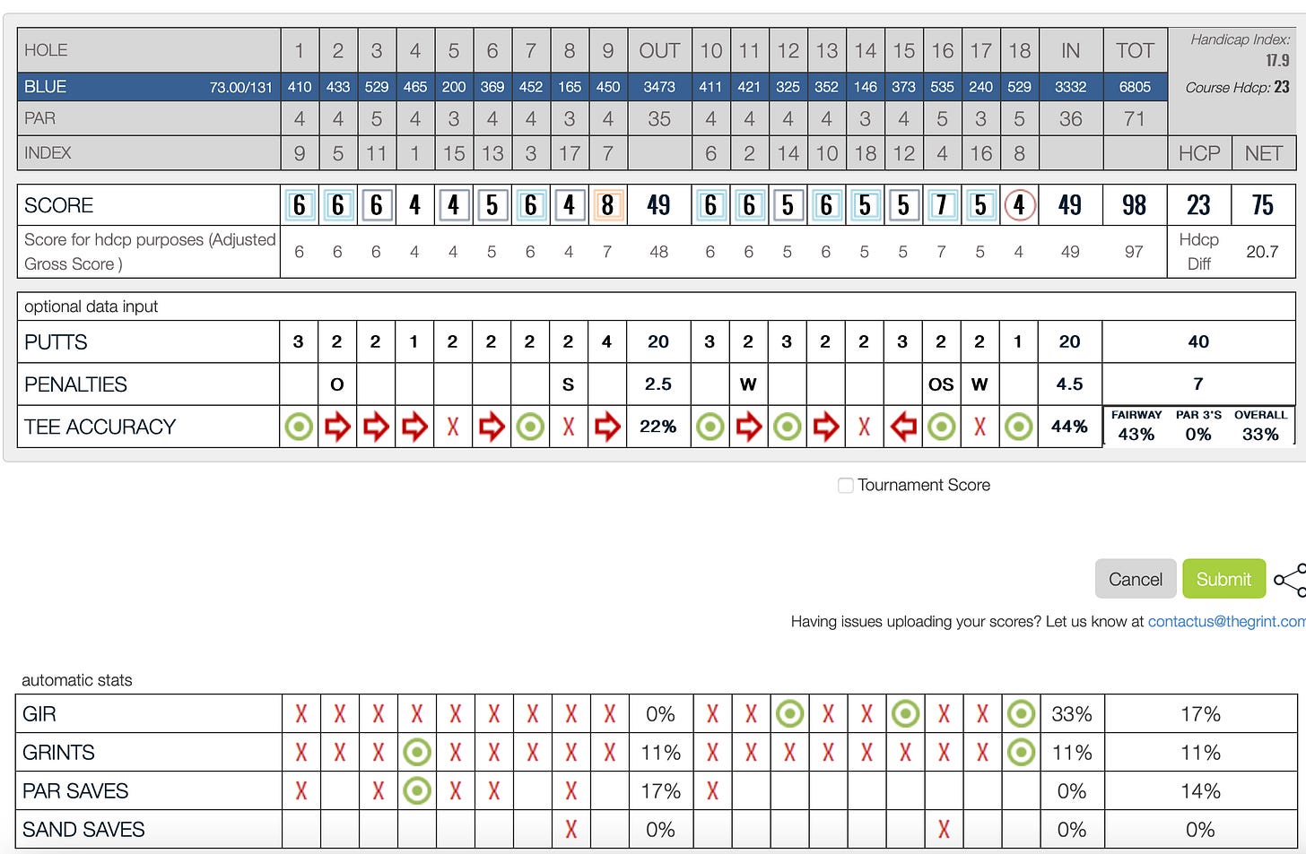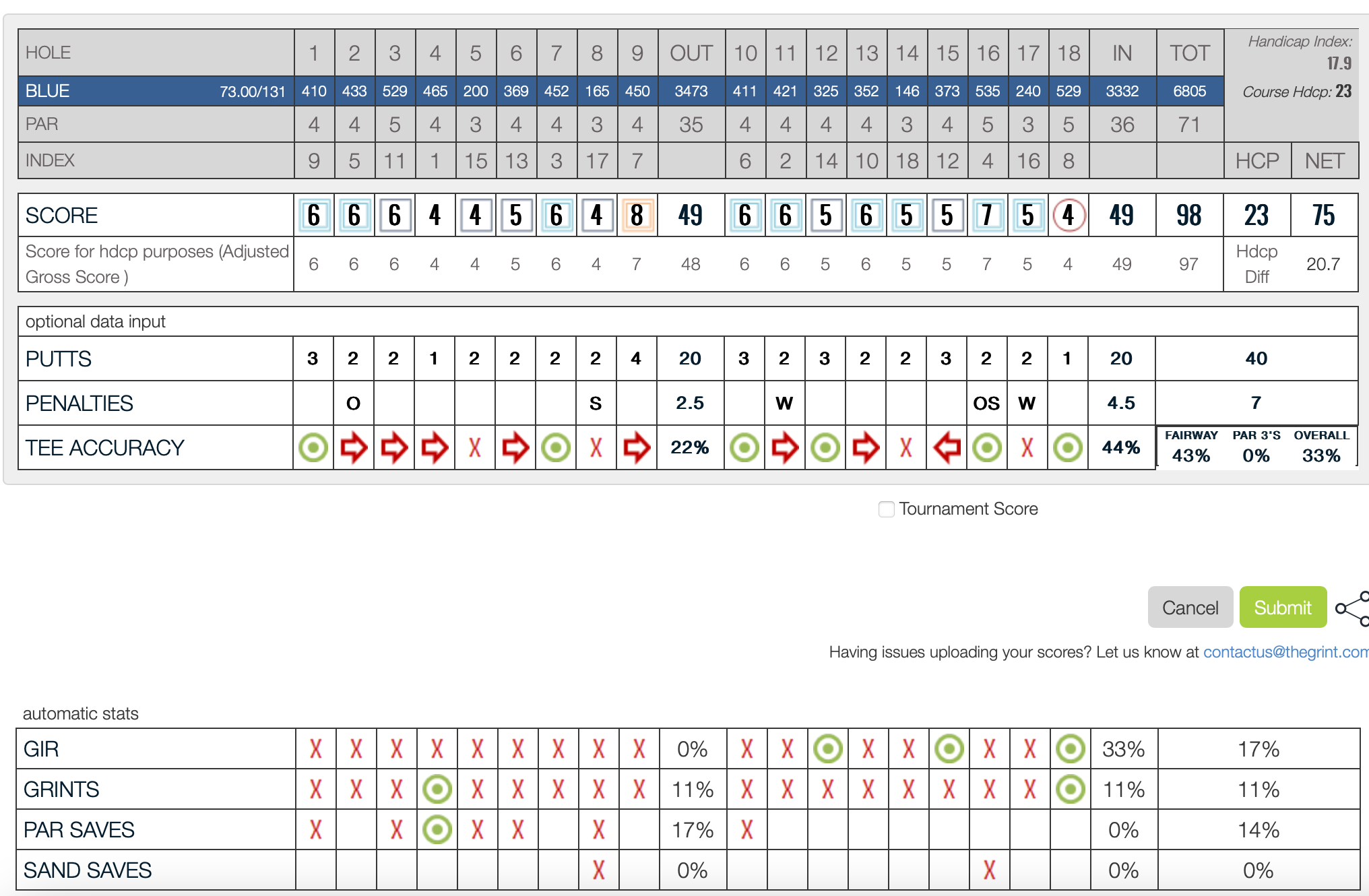 A 98 at normandy from the back tees, I’m not super happy with it but not disappointed either. I could probably drop 5+ strokes if I moved up a tee, but to be honest I really like playing from this distance because not only does it challenge me but I feel like I have what it takes to perform, it’s just harder said than done.